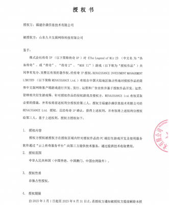 202308-16我公司,好体育官方网站登录信息技术有限公司,系经《Legend of Mir 2》(中文名为“热血传奇”)共有著作权人株式...