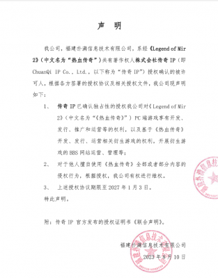 202404-05关于传奇IP已确认对好体育官方网站登录授权有效之声明
