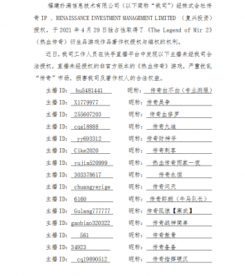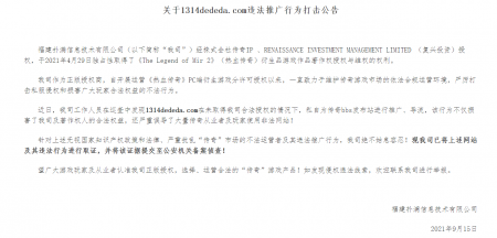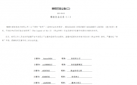 202108-30维权打击公告(二) 好体育官方网站登录信息技术有限公司(以下简称“我司”)经株式会社传奇IP 、RENAISSANCE INVESTMENT MANA...